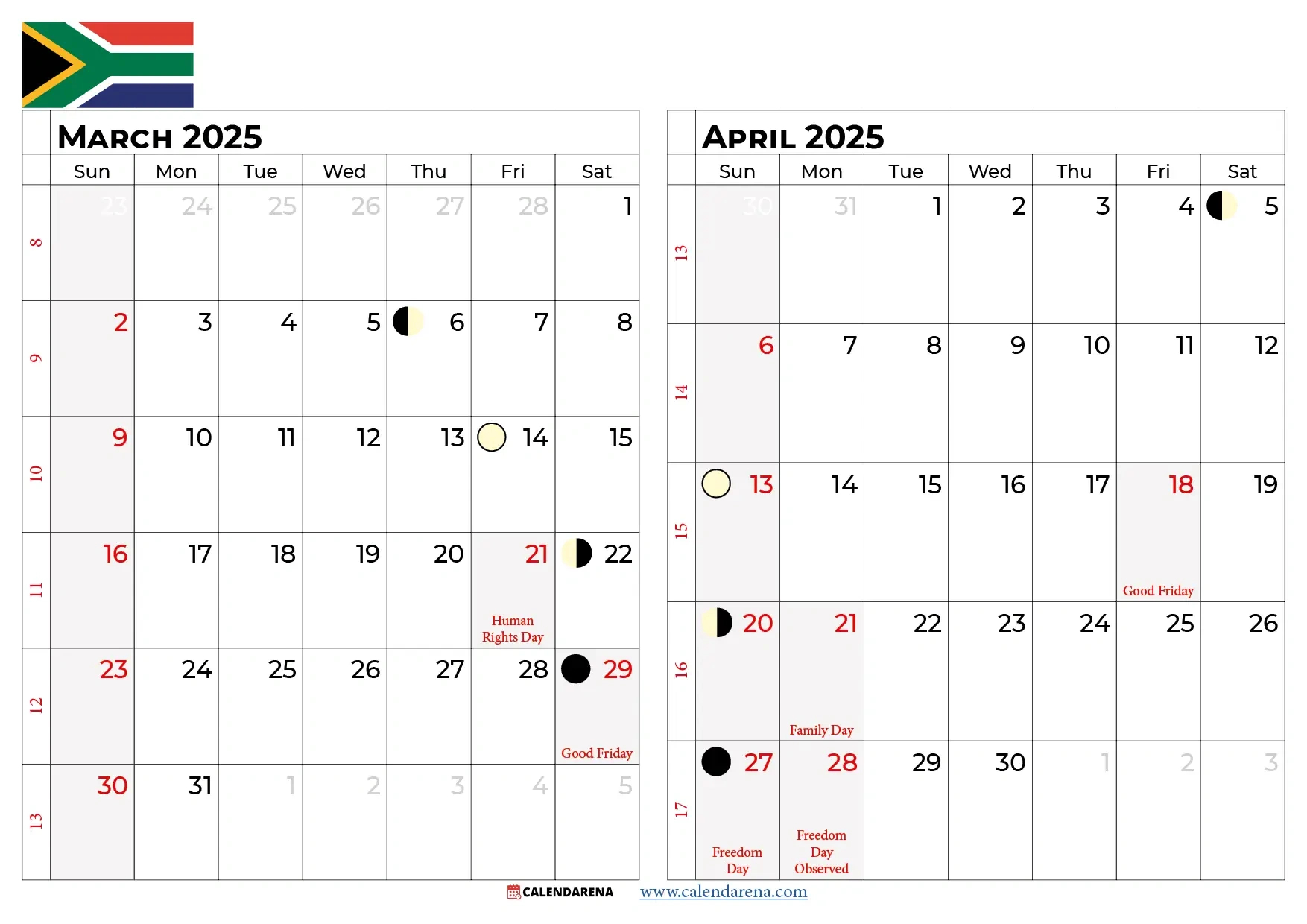 It’s time to take charge of your schedule and make April 2025 your most productive month yet! With our South Africa Printable Calendar, you can easily map out your appointments, set reminders for important deadlines, and ensure that you never miss a beat. Whether you prefer to jot down your plans by hand or type them out digitally, our versatile calendar allows you to customize your schedule to suit your preferences. Say goodbye to missed appointments and forgotten tasks – with our April 2025 Calendar, you’ll be well-equipped to tackle the month ahead with confidence and ease.
