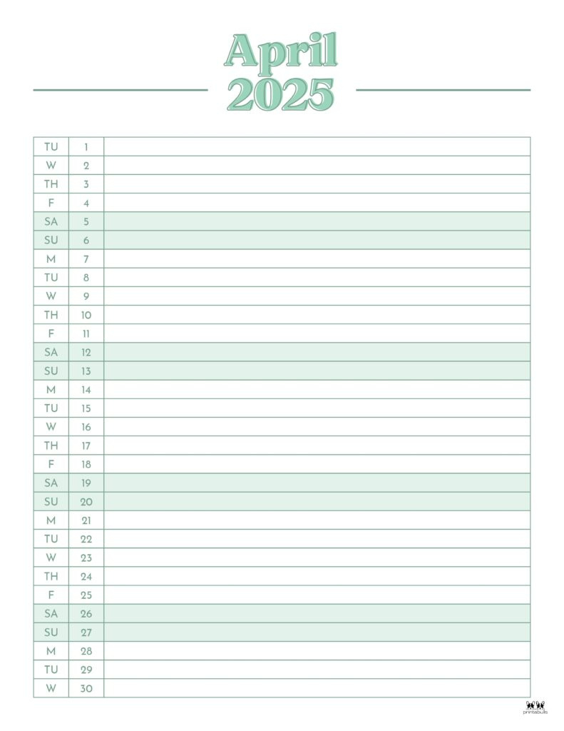 With our April 2025 Daily Calendar Printable, you can say goodbye to chaos and hello to productivity as you spring into action and get organized for the month ahead. Our beautifully designed calendar will help you stay on top of your schedule, prioritize tasks, and achieve your goals with ease. Don’t let another day slip by in a haze of disorganization – download our calendar today and start reaping the benefits of a more organized and energized life!