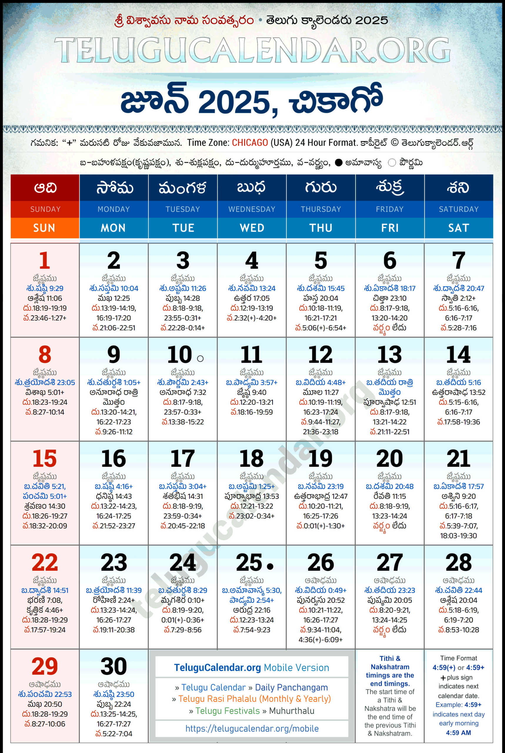 Telugu Calendar 2025, June inside Chicago Telugu Calendar June 2025