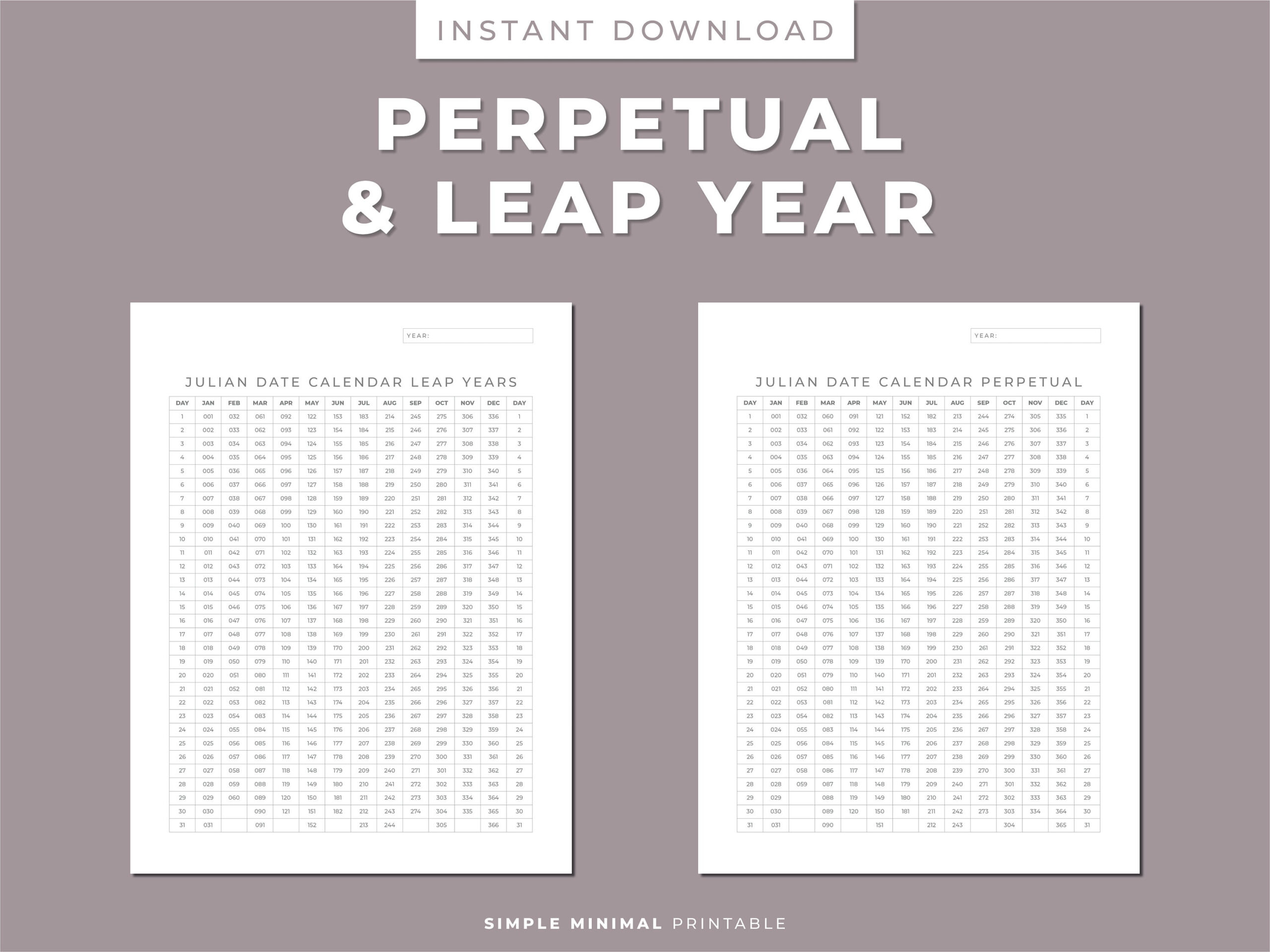 Julian Date Calendar Perpetual and Leap Year Printable – Are you looking for a way to add a touch of old-world charm to your daily schedule? Look no further than a Julian calendar printable! The Julian calendar, named after Julius Caesar, has been used for centuries and is known for its simplicity and elegance. By printing out a Julian calendar, you can embrace tradition and add a timeless flair to your planning. Whether you use it for scheduling appointments, tracking important dates, or simply as a decorative piece, a Julian calendar printable is sure to bring a sense of nostalgia to your everyday life.