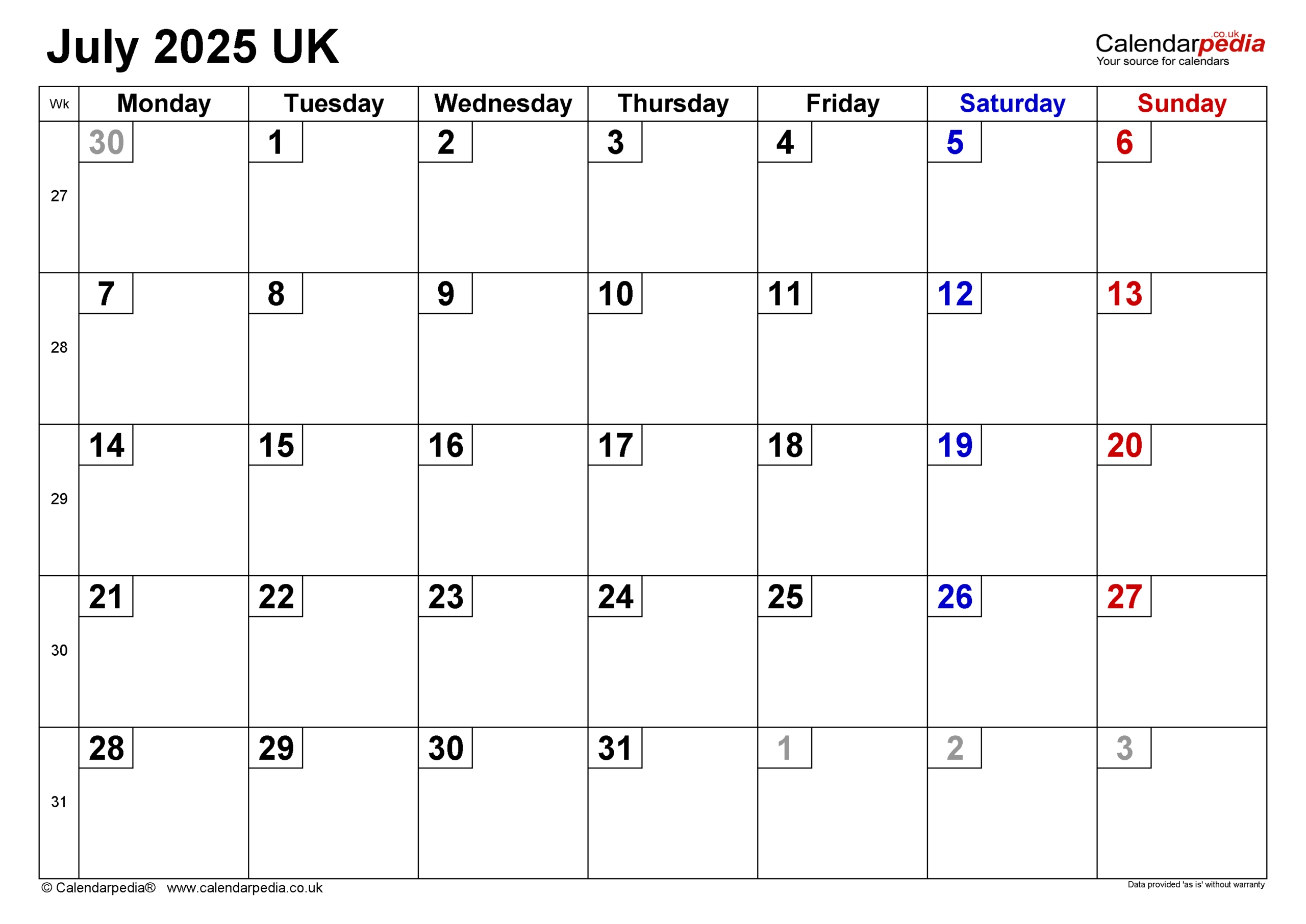 To make sure you don’t miss out on any of the summer fun, why not use a printable UK calendar to organize your schedule? With a calendar in hand, you can easily plan out your days, weeks, and months ahead, making it easier to manage your time and make the most of your summer. Whether you prefer digital calendars or a physical copy to hang on your wall, having a visual representation of your plans can help you stay on track and ensure you don’t miss any of the exciting events happening this July.