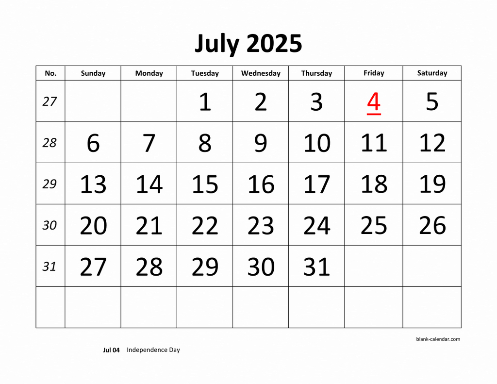 July 2025 Large Print Calendar – Are you ready to take charge of your schedule and make the most out of every day? Look no further than our July 2025 Big Print Calendar! With large, easy-to-read print and plenty of space for notes and reminders, this calendar is the ultimate tool for staying organized and ahead of the game. Whether you’re juggling work, family, appointments, or just trying to keep track of important dates, our Big Print Calendar has got you covered.