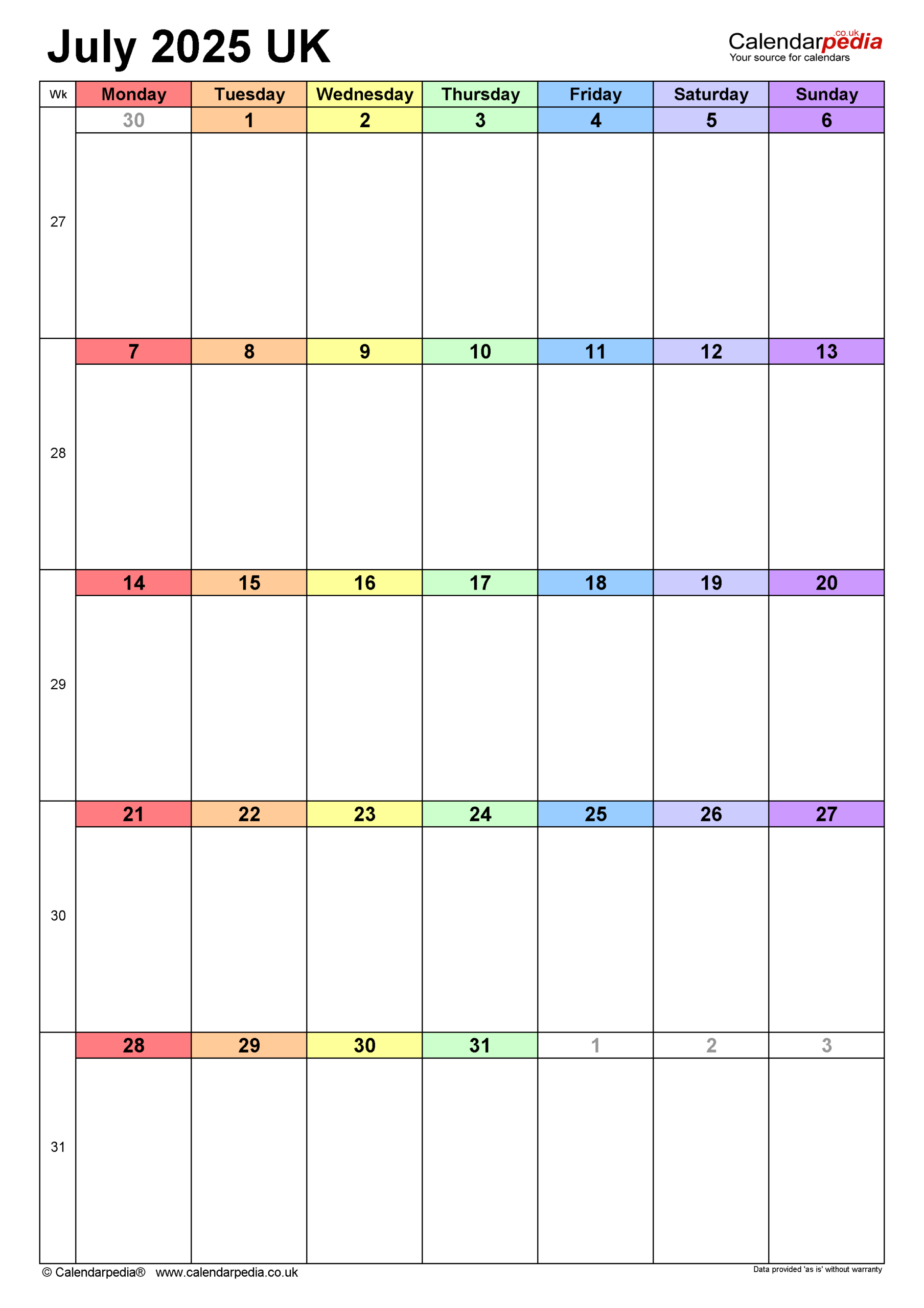 Calendar July 2025 Uk With Pdf, Excel And Word Templates pertaining to July Calendar 2025 Word