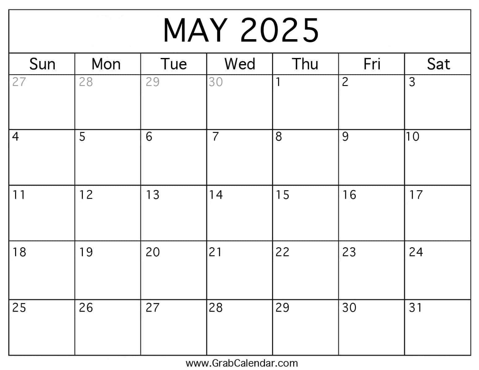 May 2025 Calendars - Free Printable & Fillable intended for May 2025 Calendar Printable Word