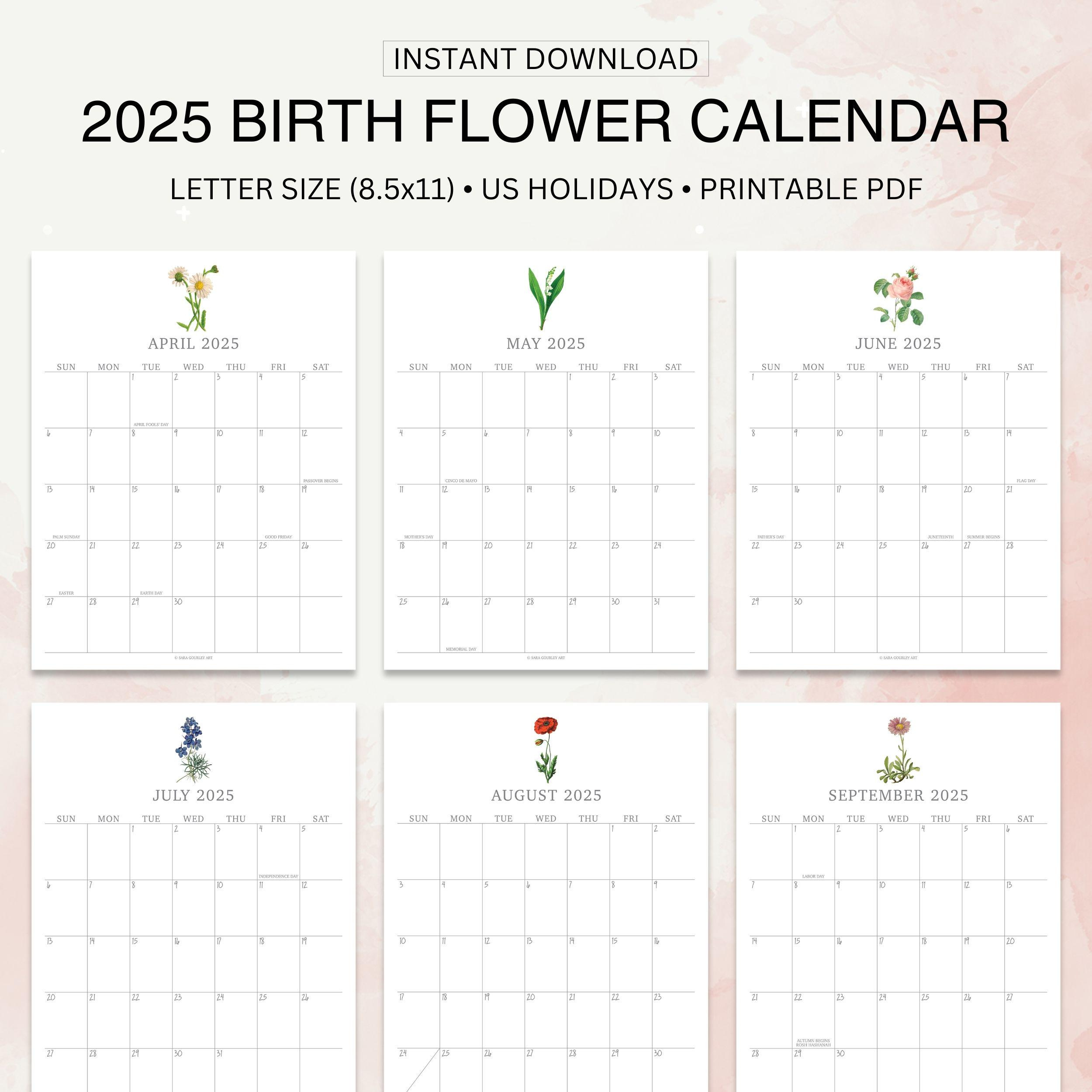 2025 Calendar Printable, Birth Month Flowers, Digital Download with May 2025 Printable Calendar Waterproof